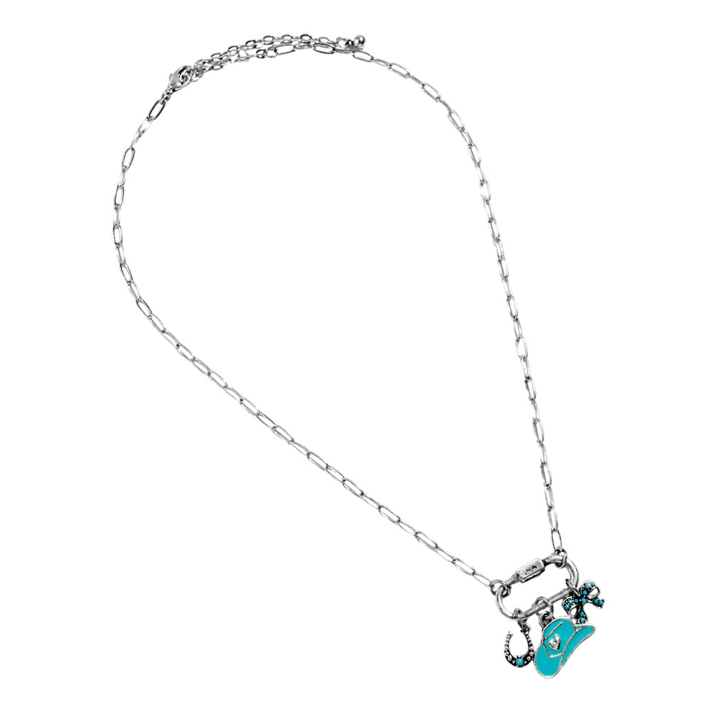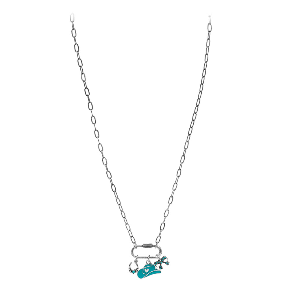 • Chain necklace designed with a centered charm cluster that adds a playful Western-inspired accent to any look. Lightweight and easy to layer, this statement piece brings personality and shine to casual outfits or dressed-up ensembles alike.