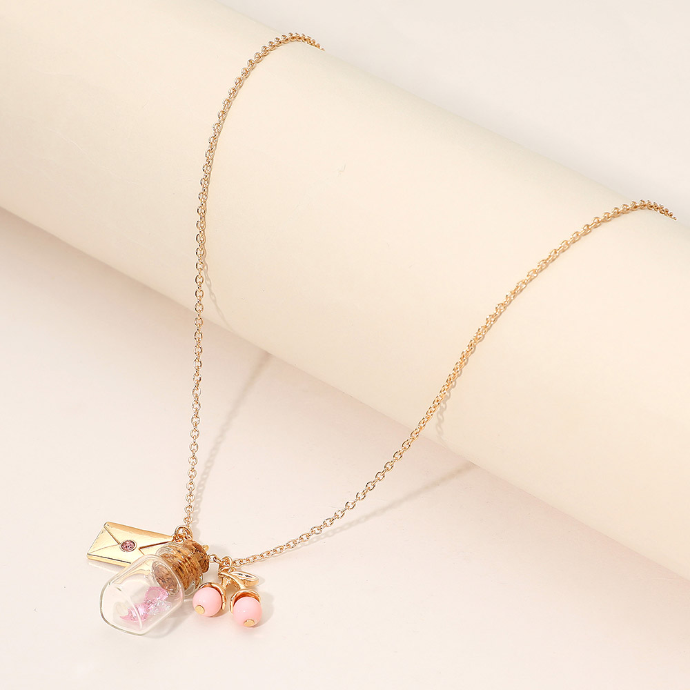 Whimsical Glass Bottle Envelope Cherry Charm Pendant Necklace