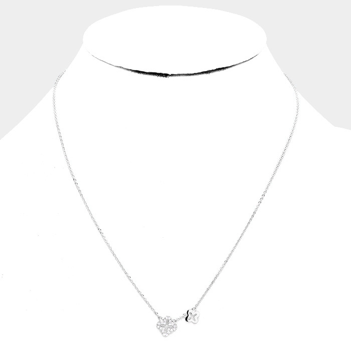 White Gold Dipped Cubic Zirconia Quatrefoil Pendant Necklace