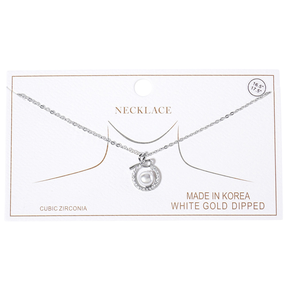 Gold Dipped CZ Pave Halo Pearl Charm Pendant Necklace