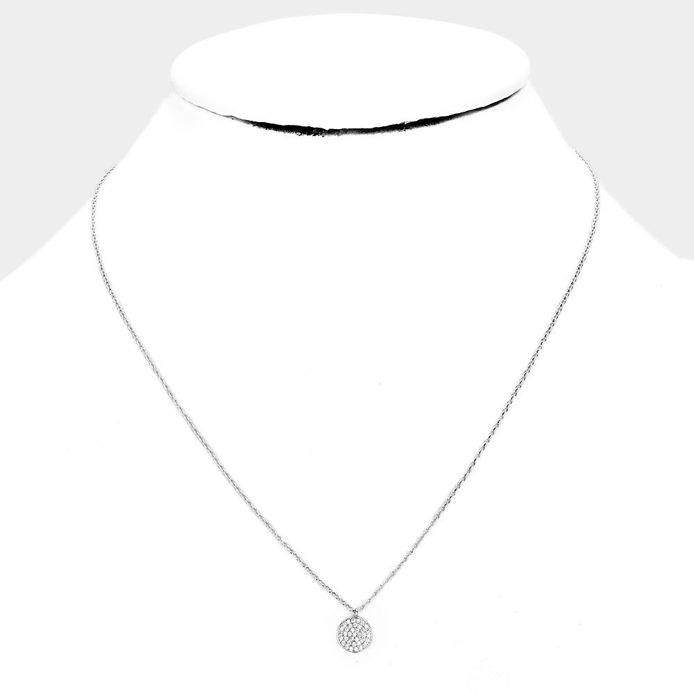 White Gold Dipped CZ Pave Pendant Necklace