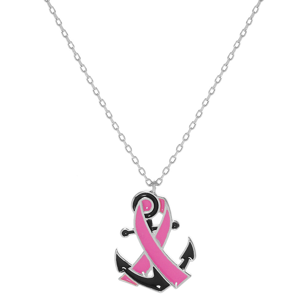 Details • Necklace Size : 15.5" + 2" L • Pendant Size : 0.6" X 0.75" • Show strength and support with this pink ribbon anchor necklace, combining the anchor’s symbol of stability with the ribbon’s message of hope and awareness. A meaningful piece that honors resilience, making it a thoughtful gift or keepsake for courage and love. • Lead and Nickel Compliant • Made In Korea • Gold Dipped