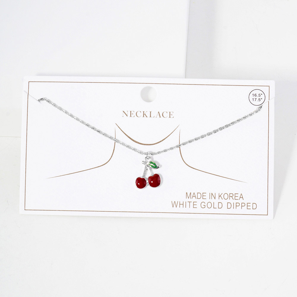 White Gold Dipped Enamel Cherry Pendant Necklace White Gold Dipped Enamel Cherry Pendant Necklace White Gold Dipped Enamel Cherry Pendant Necklace