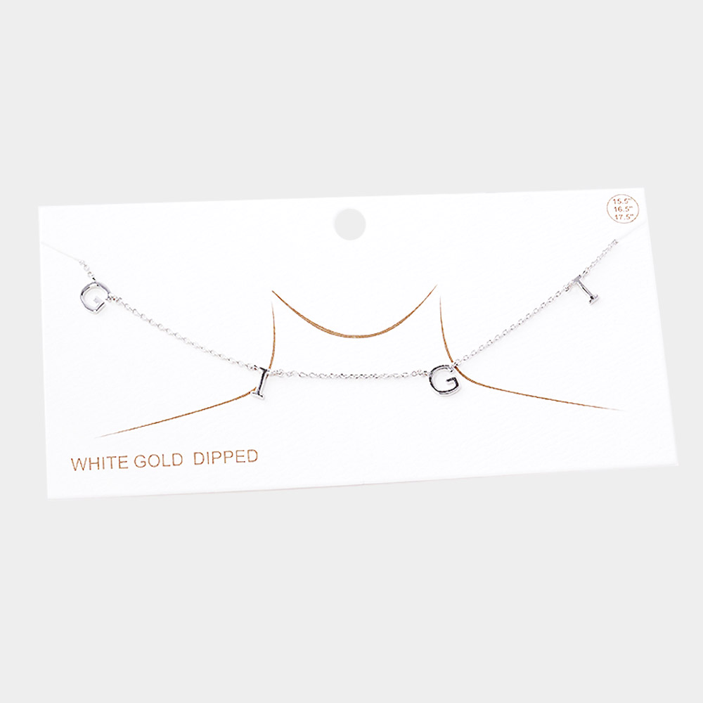 White Gold Dipped GIGI Metal Message Pendant Necklace