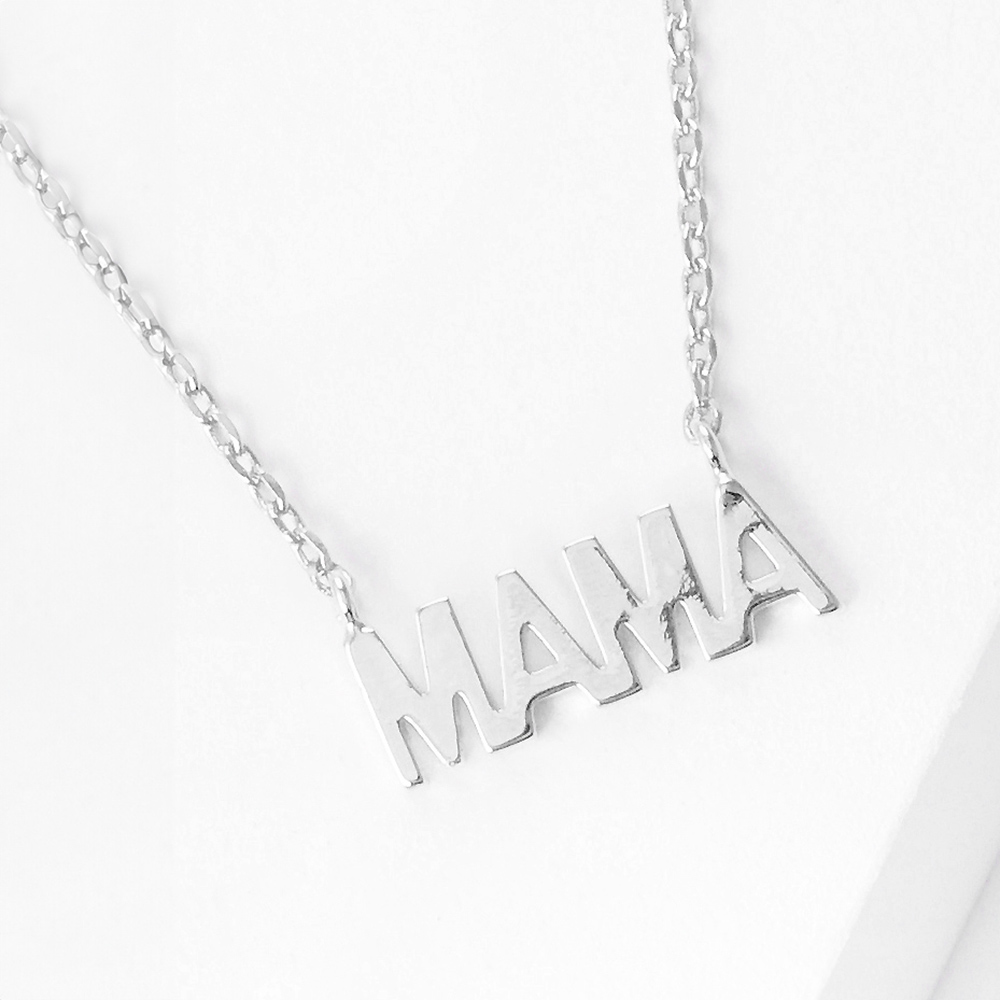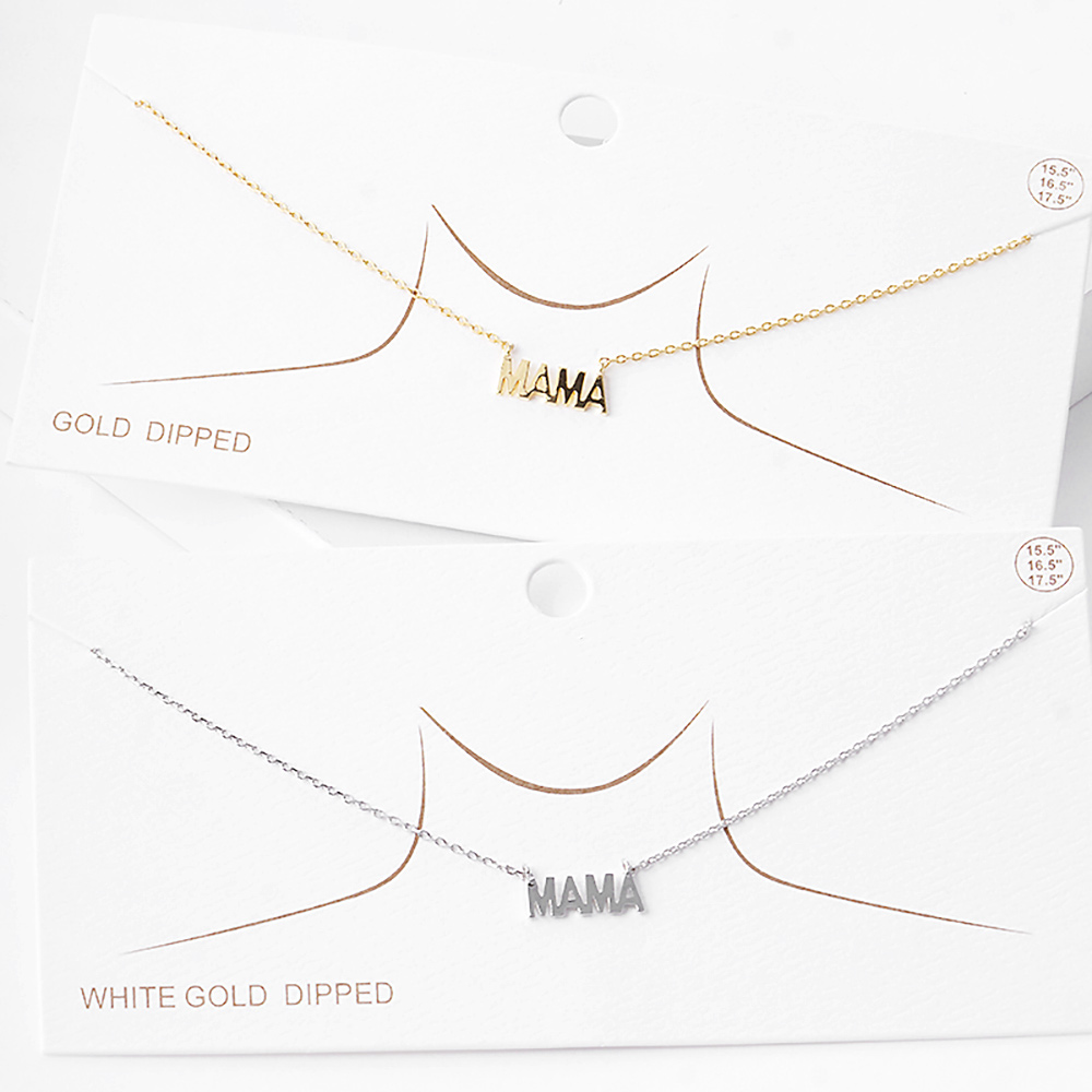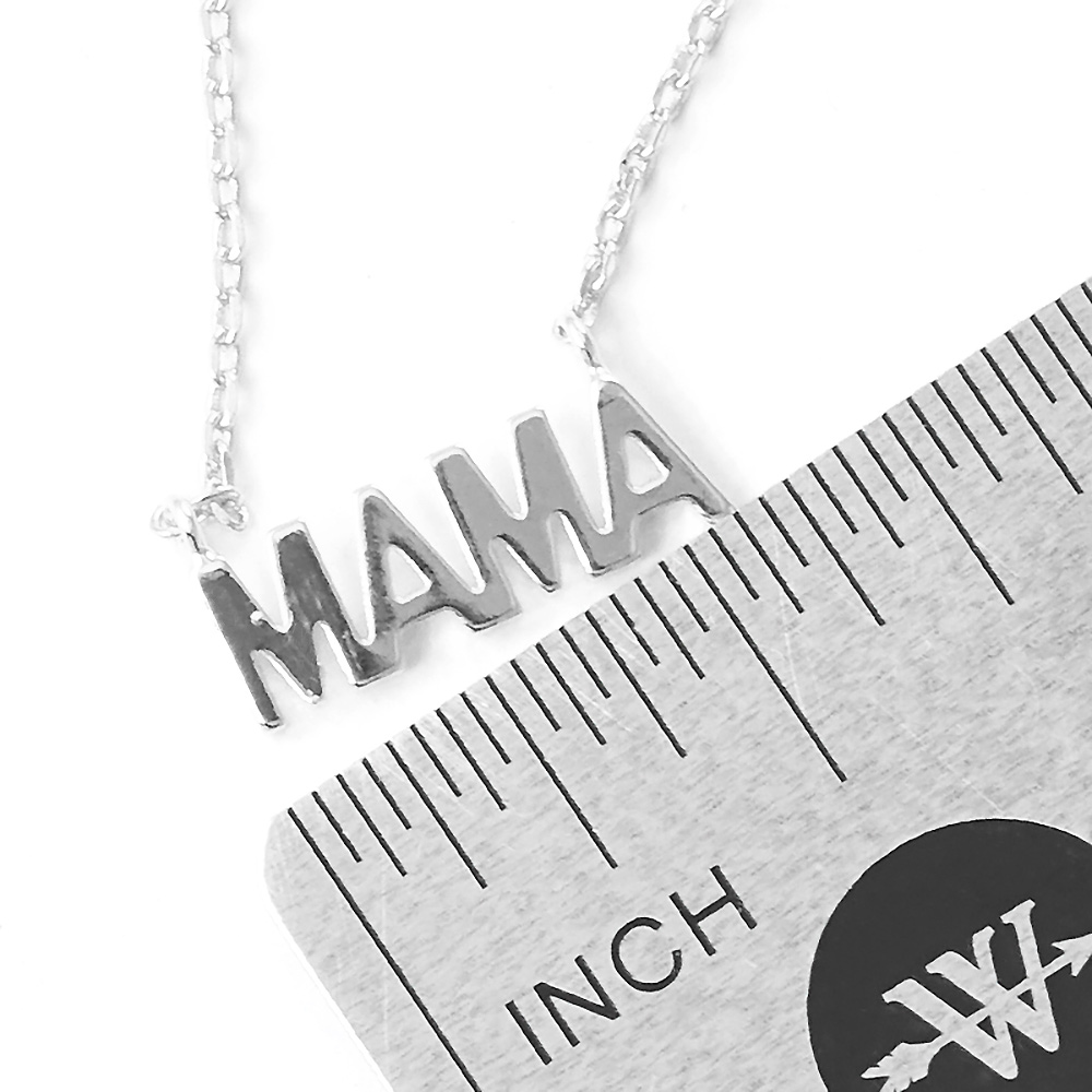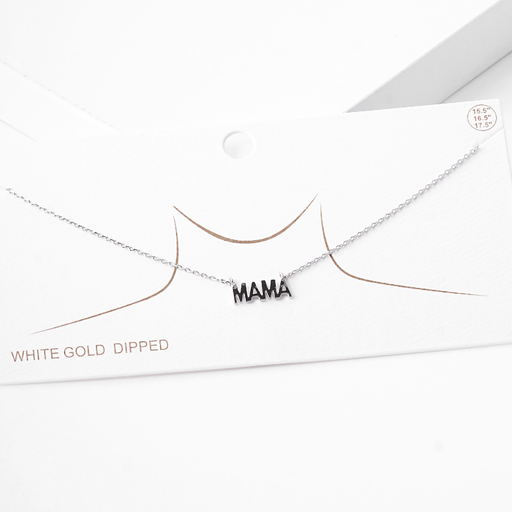 White Gold Dipped Metal MAMA Message Pendant Necklace
