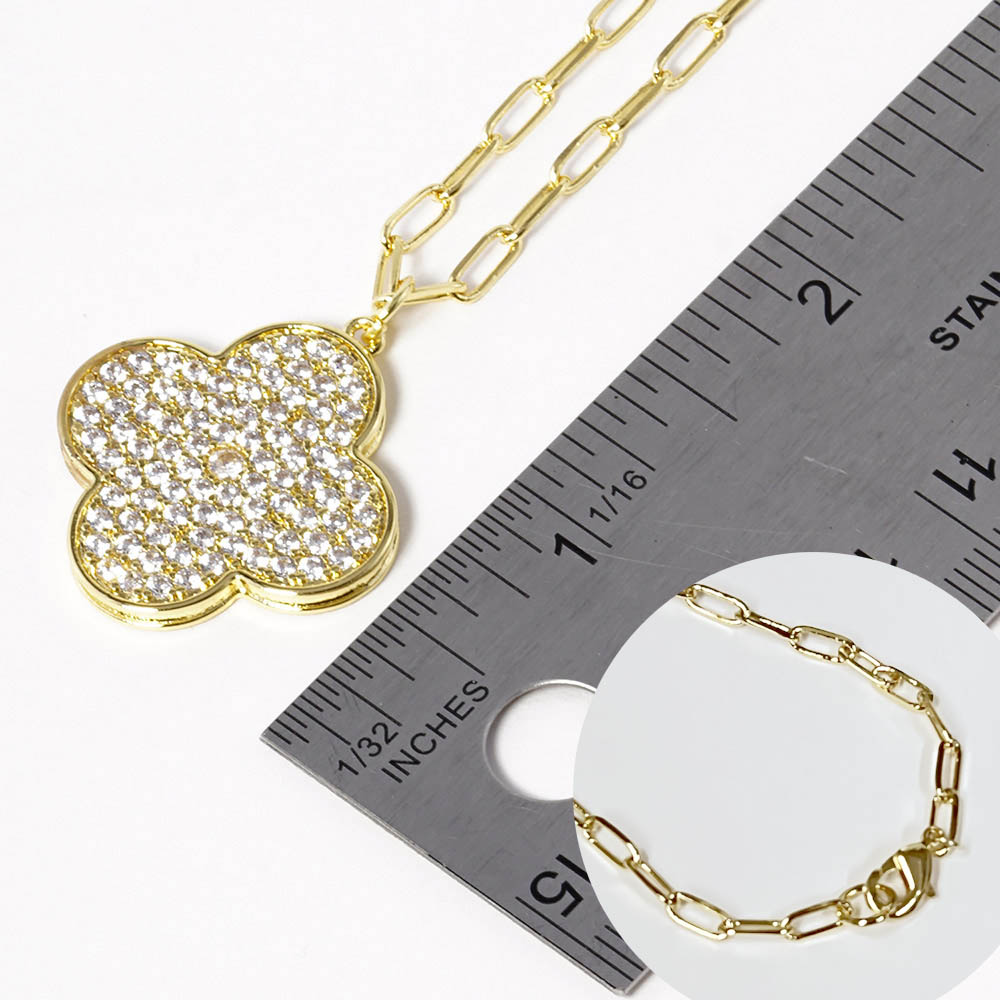 Gold Dipped Stone Paved Quatrefoil Pendant Necklace