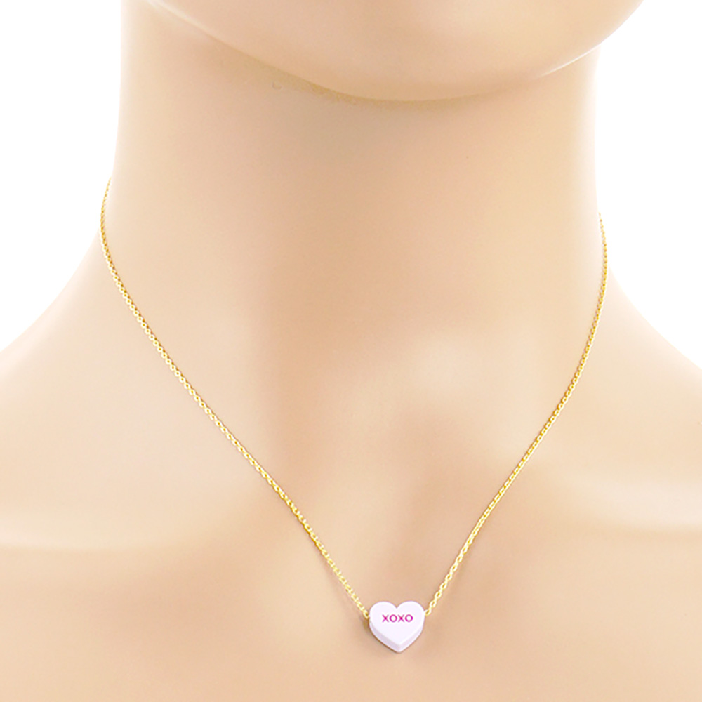 Textured Metal Heart Carabiner Pendant Colorful Chunky Beaded Statement Necklace