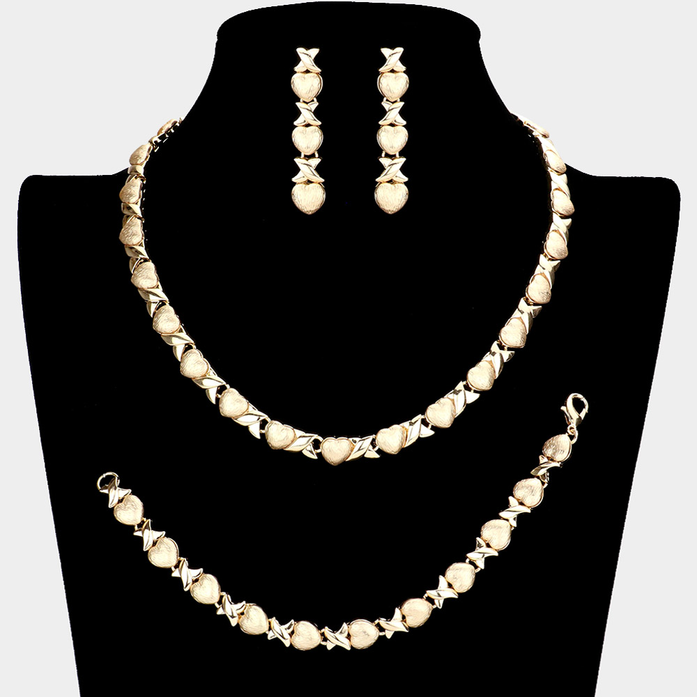 3-PCS Heart Rhinestone Necklace Jewelry Set
