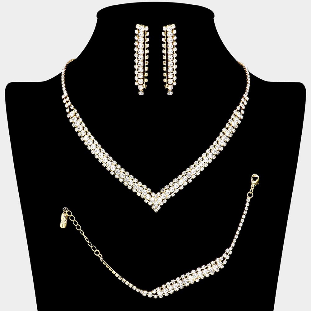 3PCS - Round Stone Detail Rhinestone Necklace Jewelry Set