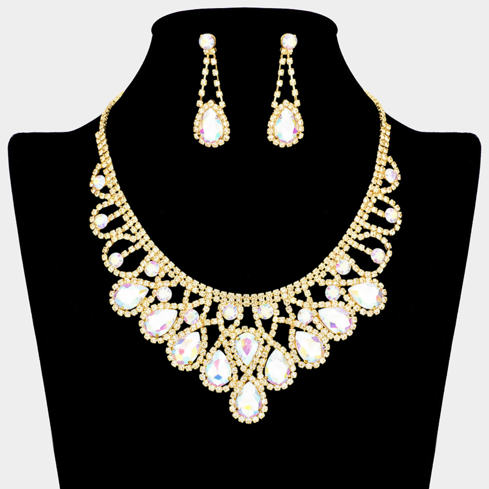 Pear Crystal Accented Rhinestone Necklace Jewelry Set