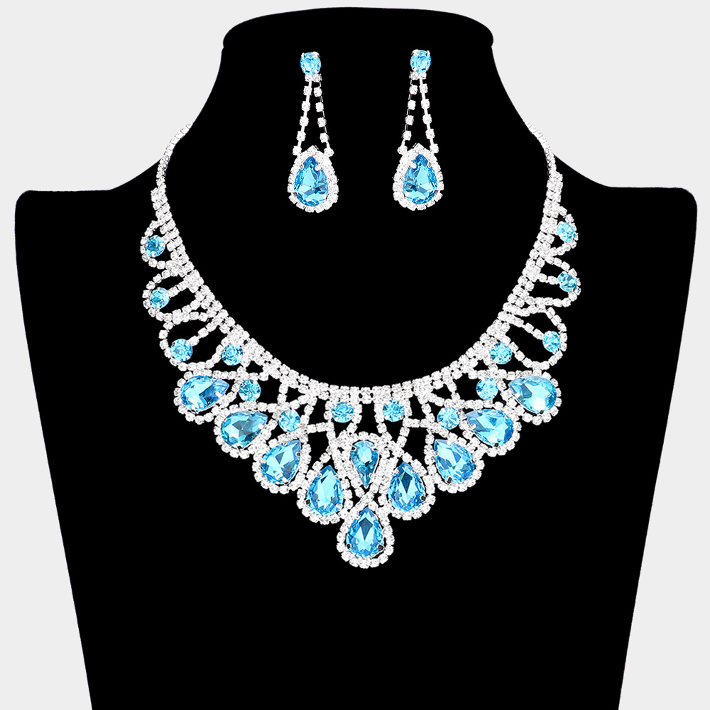 Crystal Teardrop Rhinestone Pave Evening Necklace
