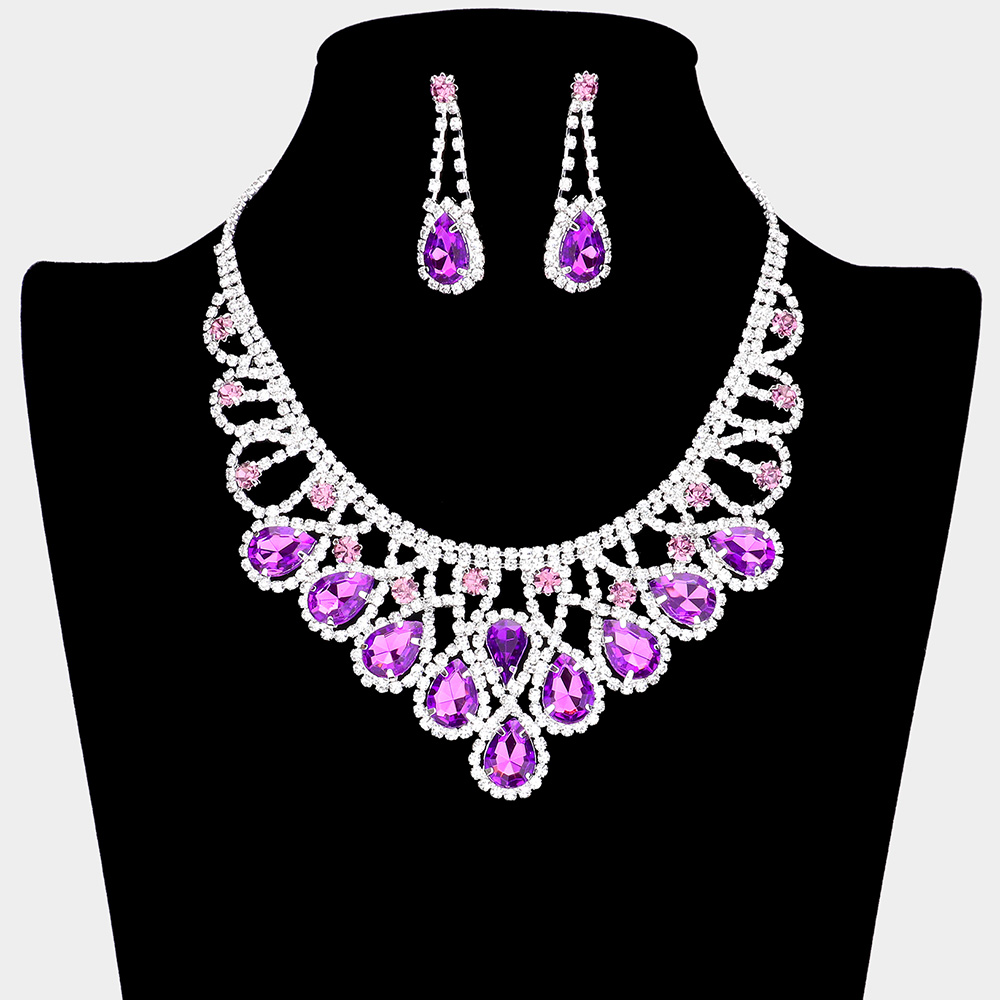 Crystal Teardrop Rhinestone Pave Evening Necklace