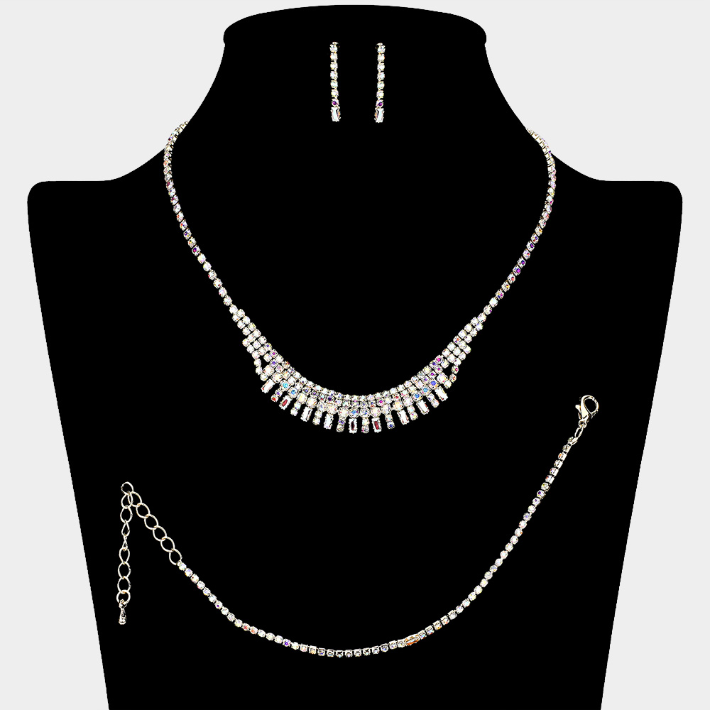 Glass Crystal Oval Stone Cluster Stretch Bracelet