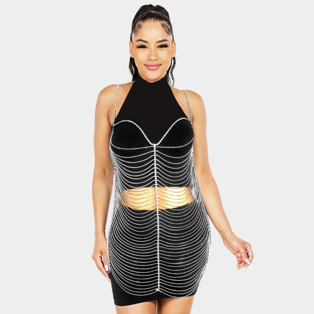 Oversized Teardrop Glass Stone Pendant Bling Studded Chunky Chain Necklace