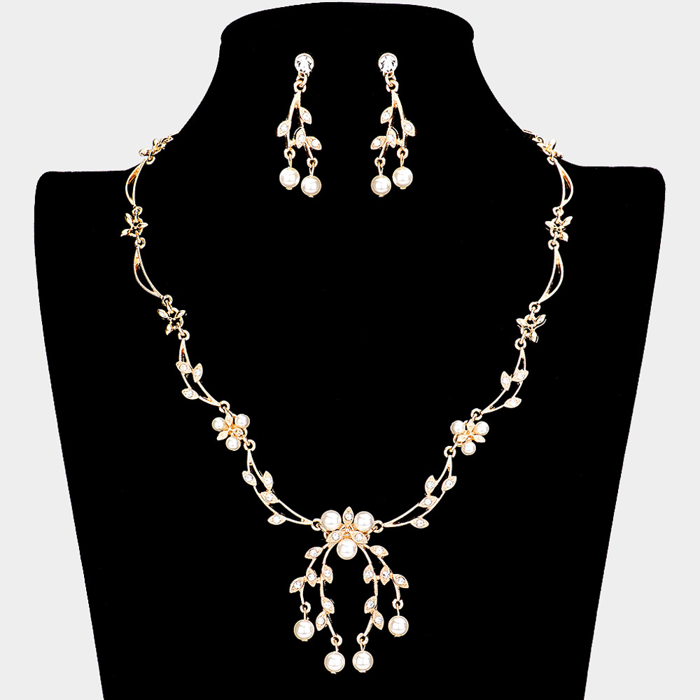 Rhinestone Paved Collar Necklace Clip on Earring Set