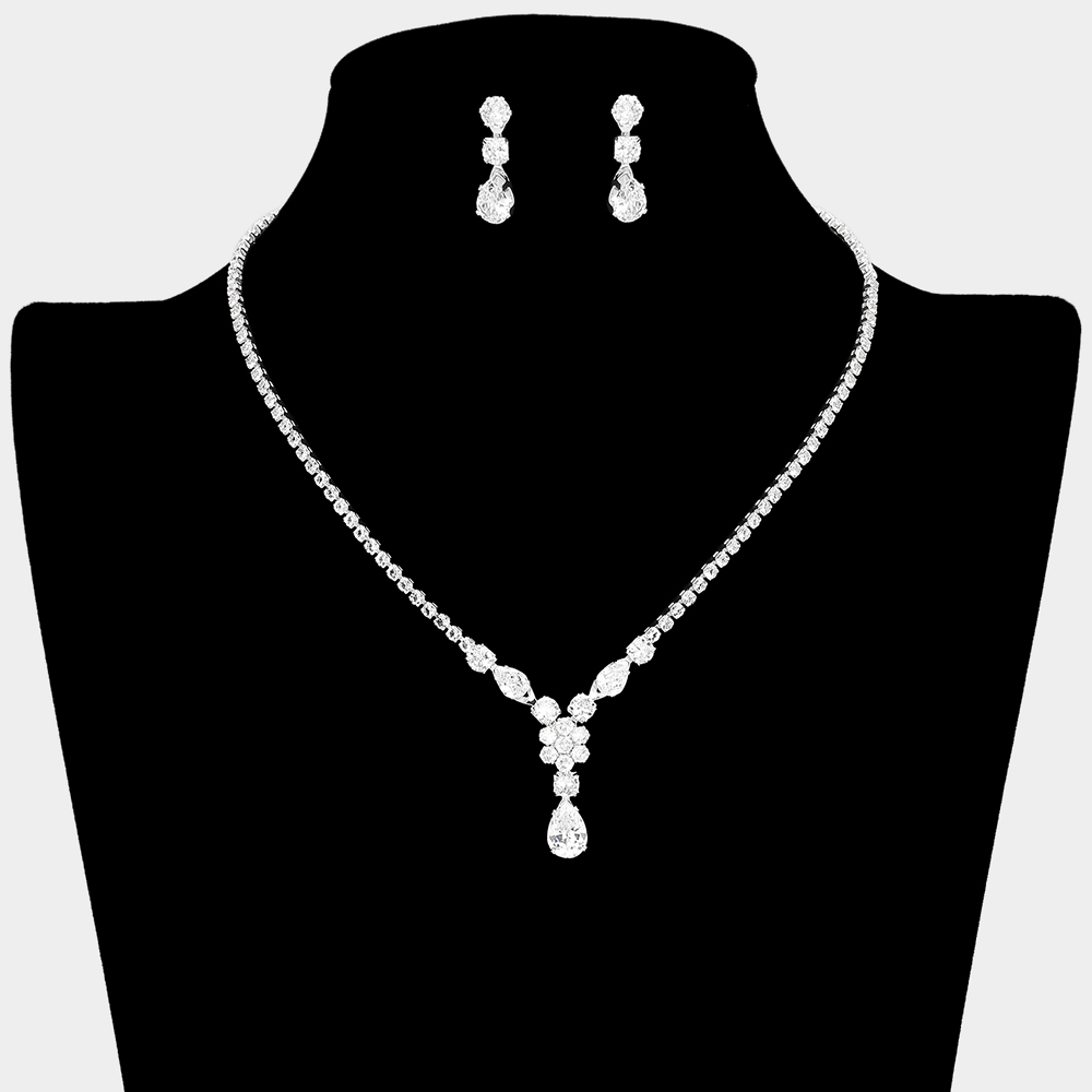 Flower CZ Stone Cluster Center Teardrop Accent Rhinestone Paved Necklace Flower CZ Stone Cluster Center Teardrop Accent Rhinestone Paved Necklace