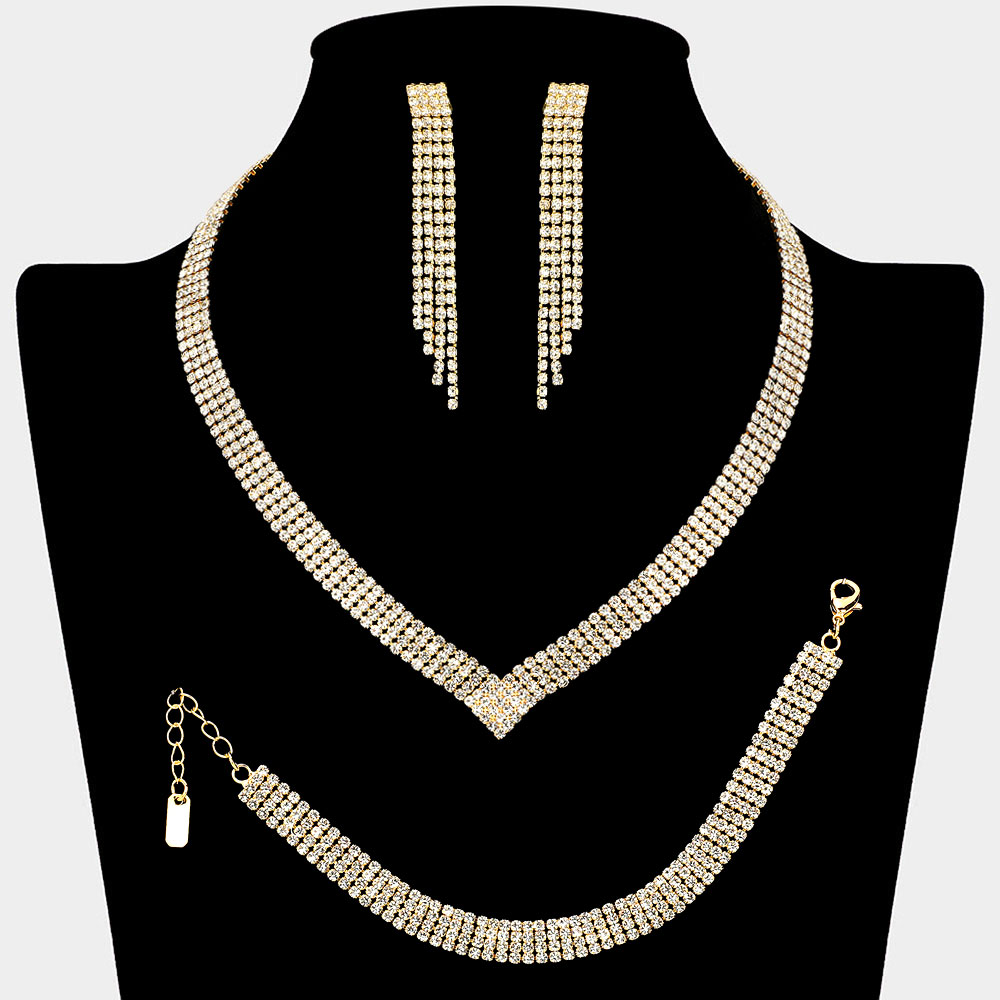 Four Row Rhinestone Paved V Shaped Jewelry Set