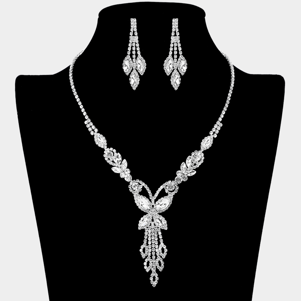 Details • Necklace Size : 16" + 4" L • Decor Size : 1.3" L • Earrings Size : 1.4" L • Make a dramatic entrance with this ornate crystal jewelry set featuring a detailed statement necklace and matching drop earrings. Its elegant, shimmering design enhances formal, bridal, and evening looks, offering a luxurious finishing touch for special celebrations and events.