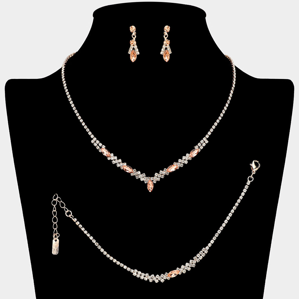 Marquise Stone Cluster Accent Rhinestone Paved Jewelry Set