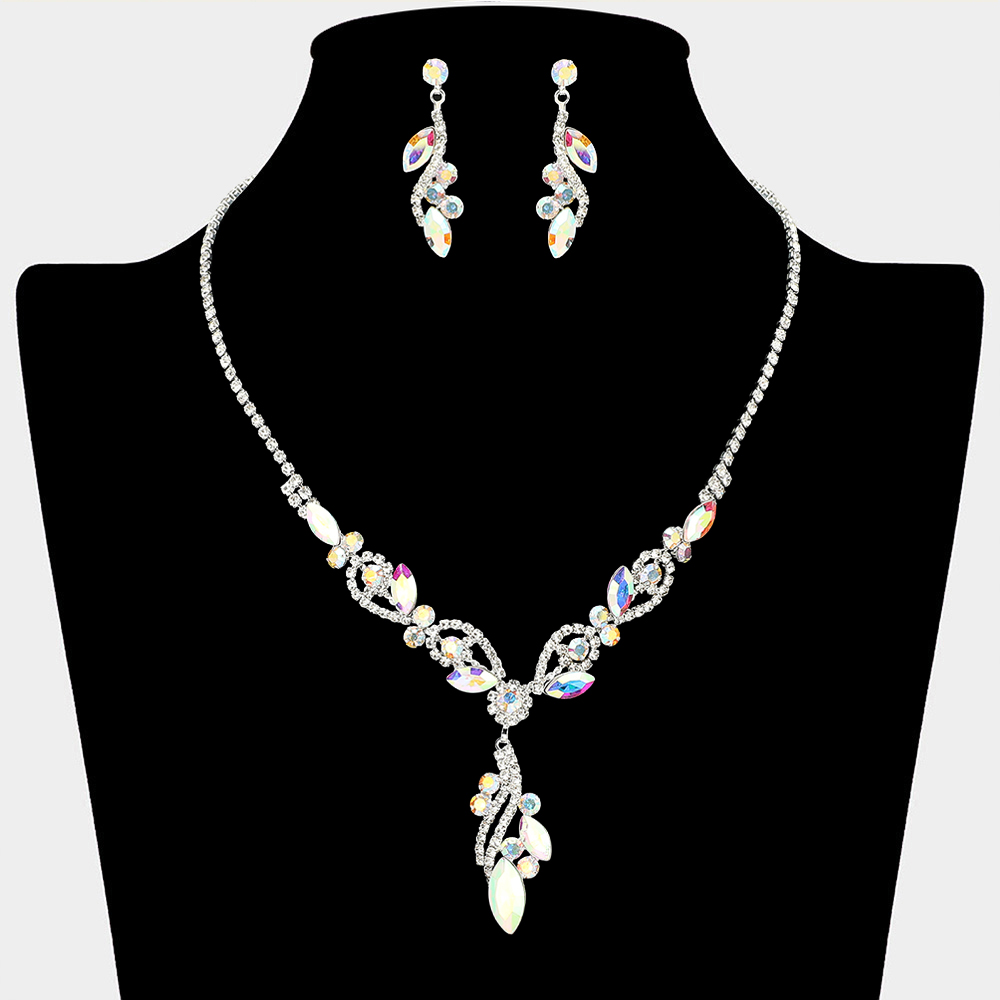 • Sophisticated necklace and earring set designed with a graceful drop centerpiece and flowing accents. Ideal for weddings, formal events, parties, and evening styling. This refined set delivers timeless elegance and a polished statement for memorable occasions.