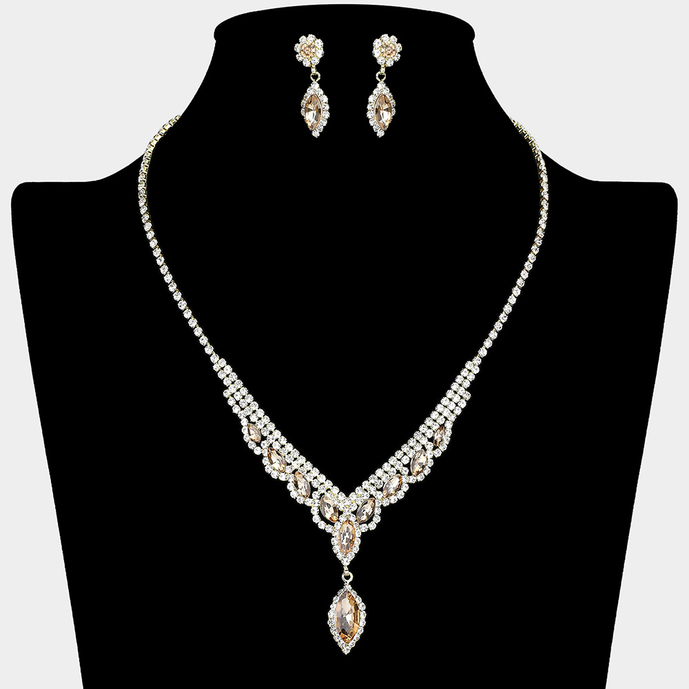 Marquise Stone Embellished Rhinestone Paved Necklace