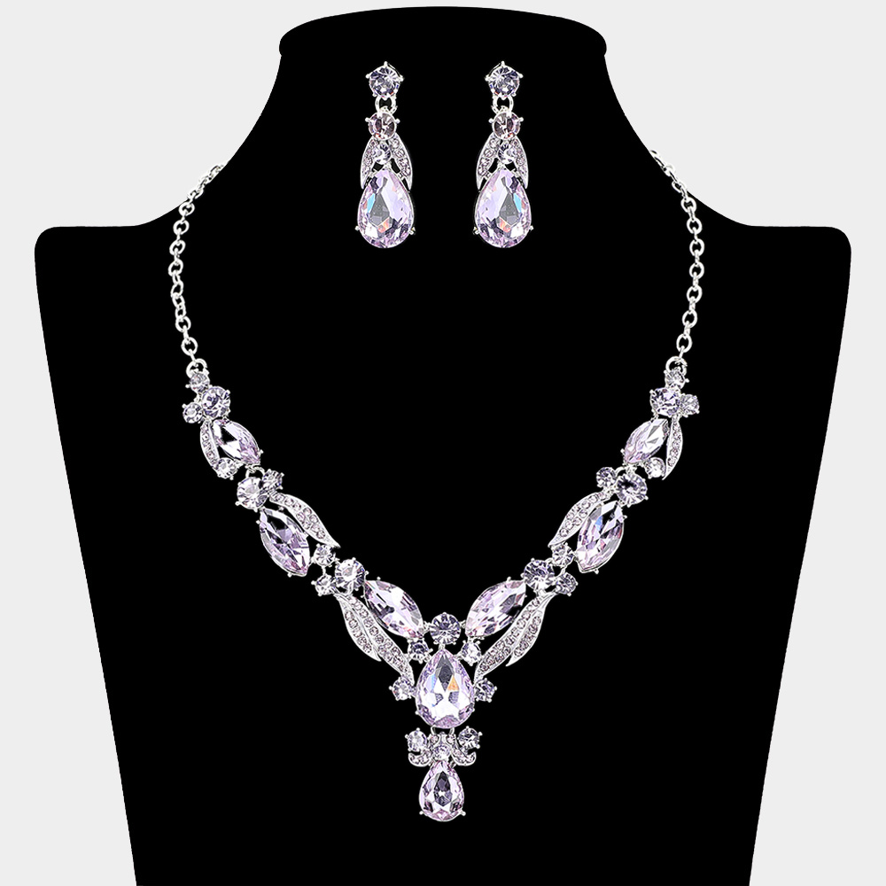 Teardrop Stone Pendant Accent Rhinestone Paved Jewelry Set