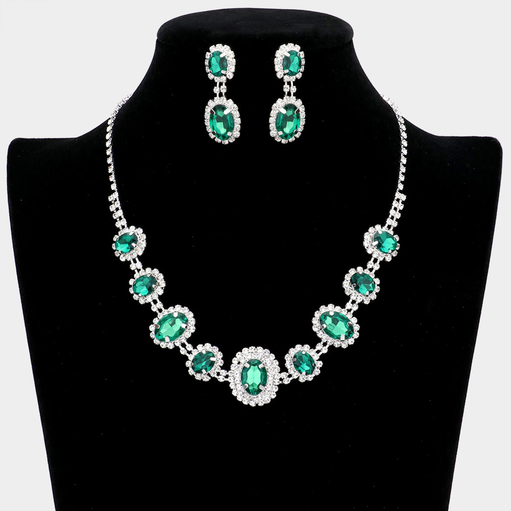 Oval Stone Accented Rhinestone Trimmed Necklace