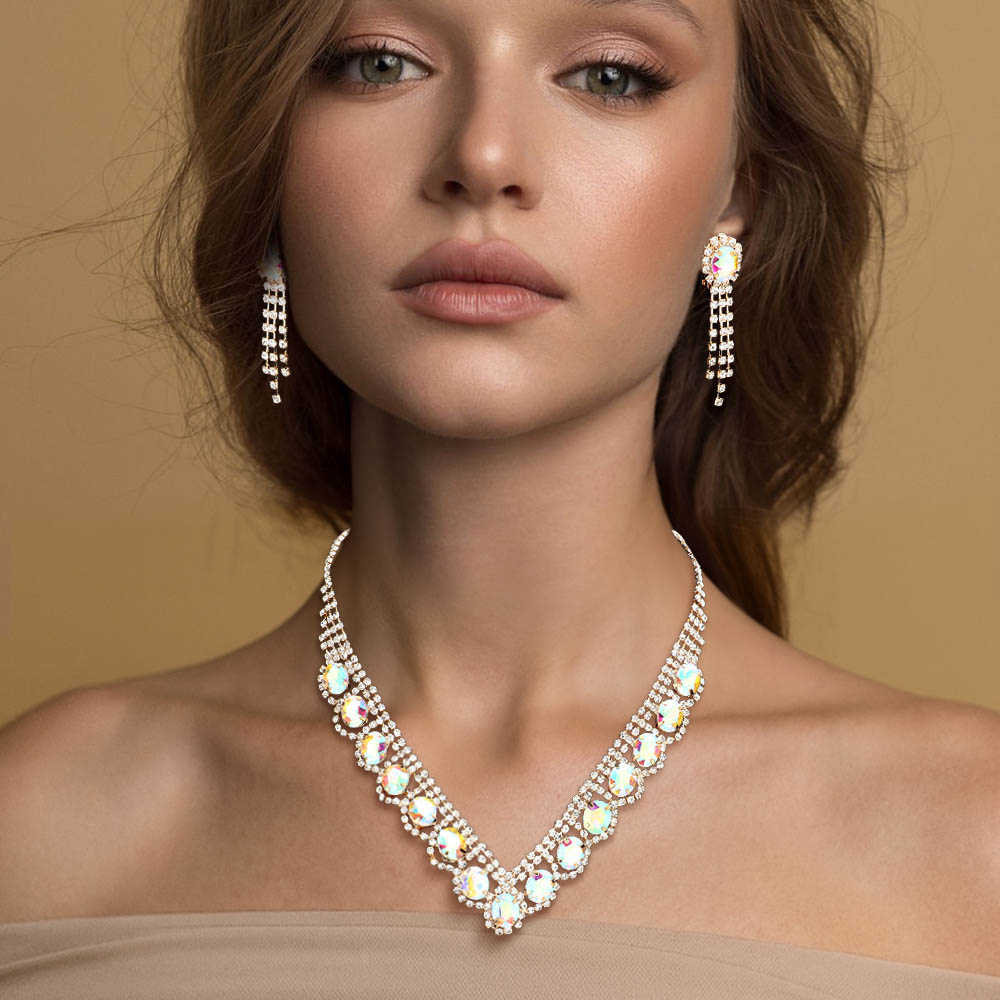 Oval Stone Accented V Shaped Rhinestone Necklace Clip on Earring Set Oval Stone Accented V Shaped Rhinestone Necklace Clip on Earring Set Oval Stone Accented V Shaped Rhinestone Necklace Clip on Earring Set