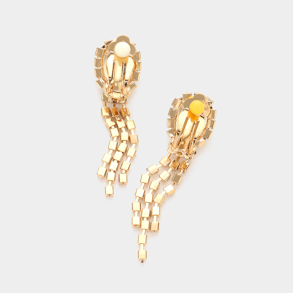 Marquise Teardrop Stone Accented Rhinestone Paved Dangle Evening Earrings