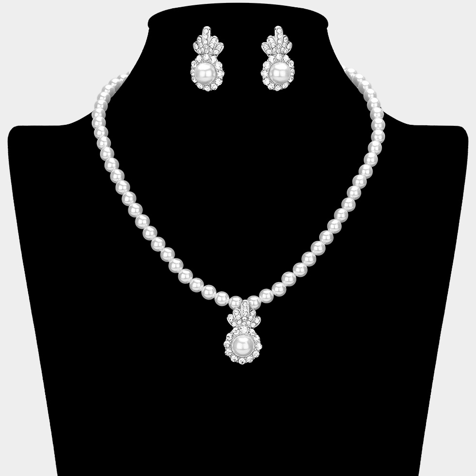 • Embrace classic elegance with this pearl drop necklace and earring set, featuring a single-strand design accented by lustrous pearls and subtle crystal details. Ideal for brides, formal occasions, or elegant soirĂ©es, this jewelry set adds a touch of grace and timeless sophistication.