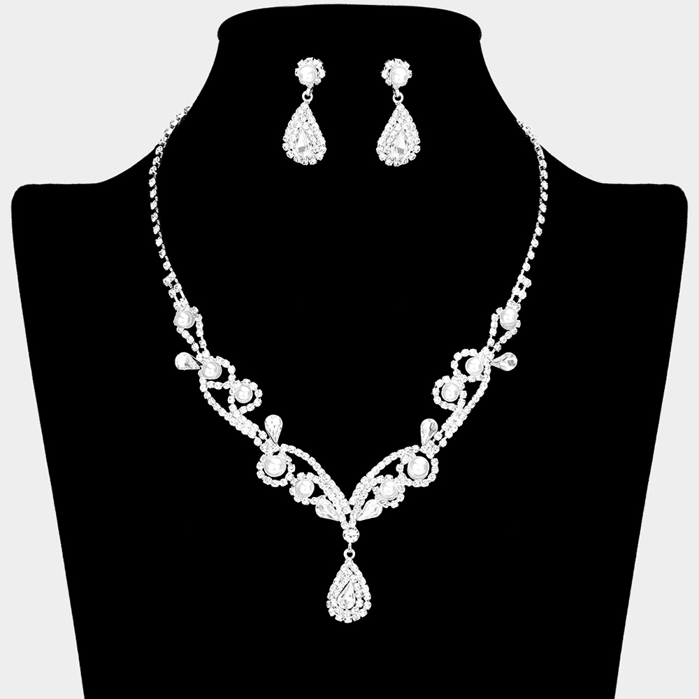 Pearl Teardrop Rhinestone Pointed Necklace