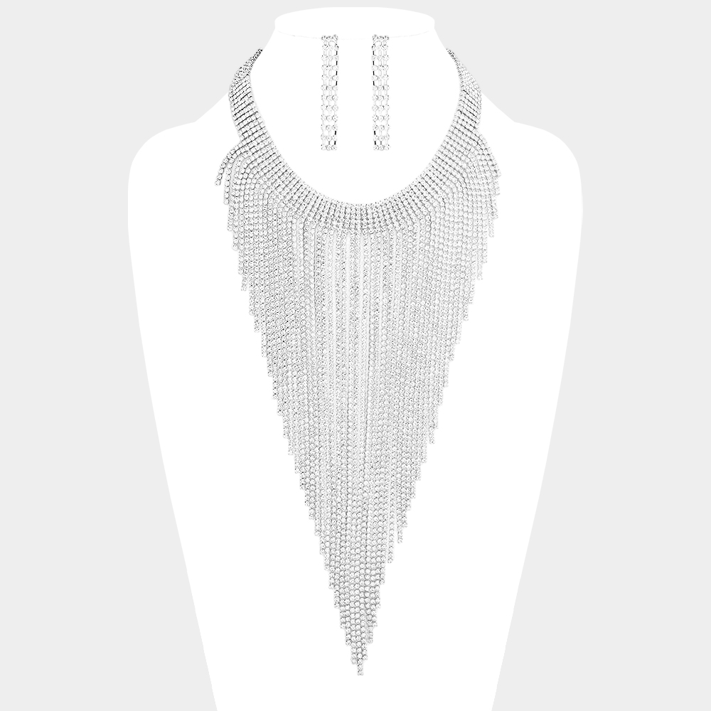 Rhinestone Pave Fringe Choker Necklace