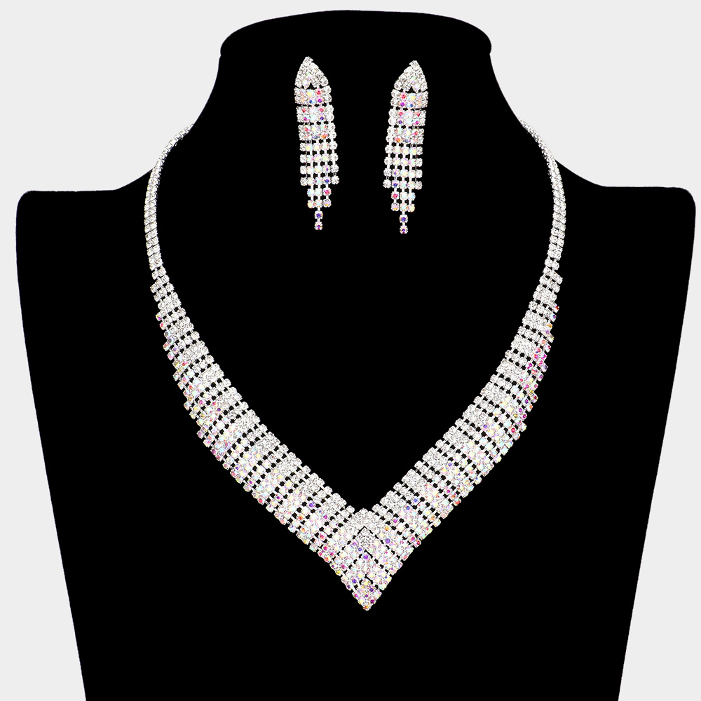 Marquise Glass Stone Cluster Pearl Embellished Vine Evening Necklace