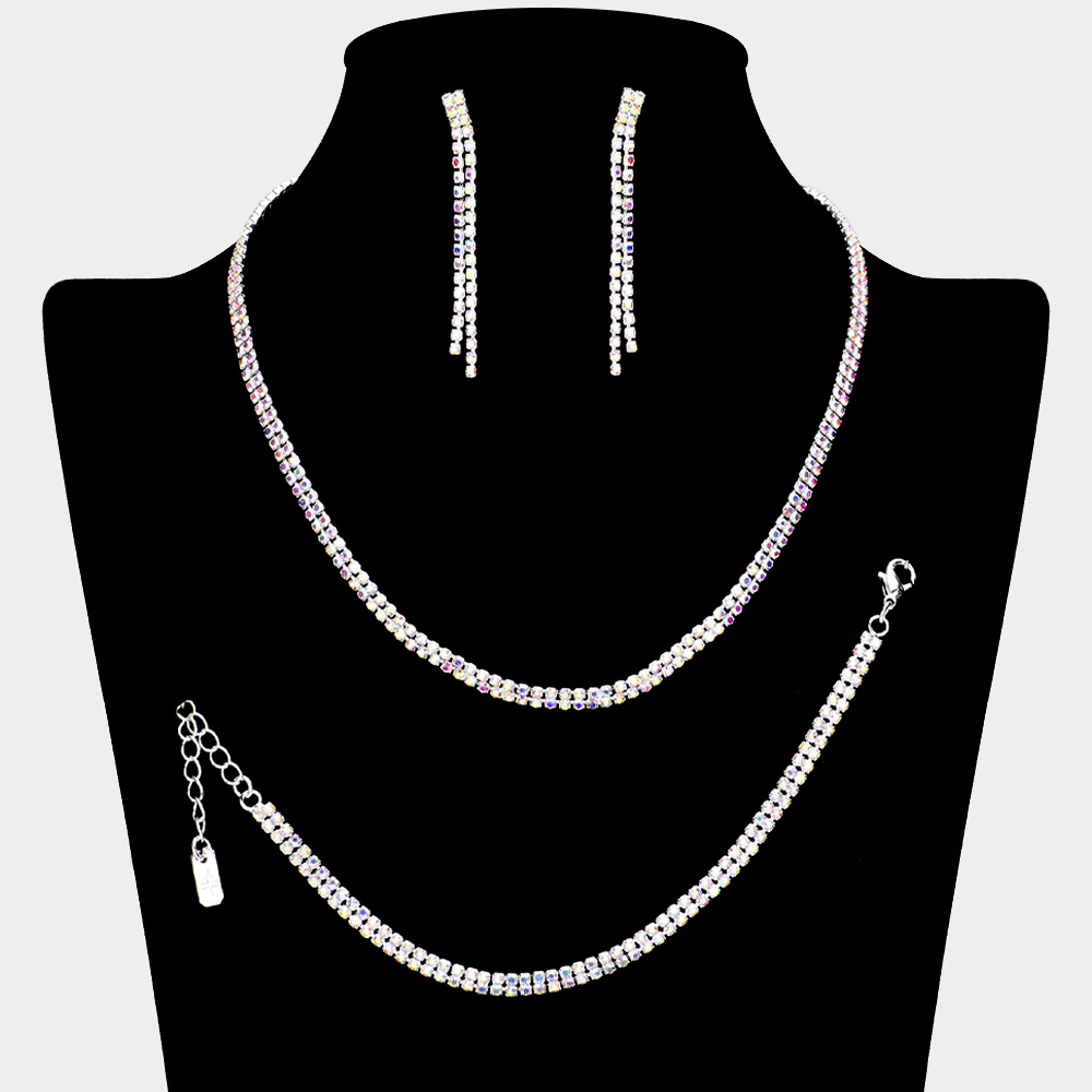Rhinestone Paved 2-Row Necklace Jewelry Set