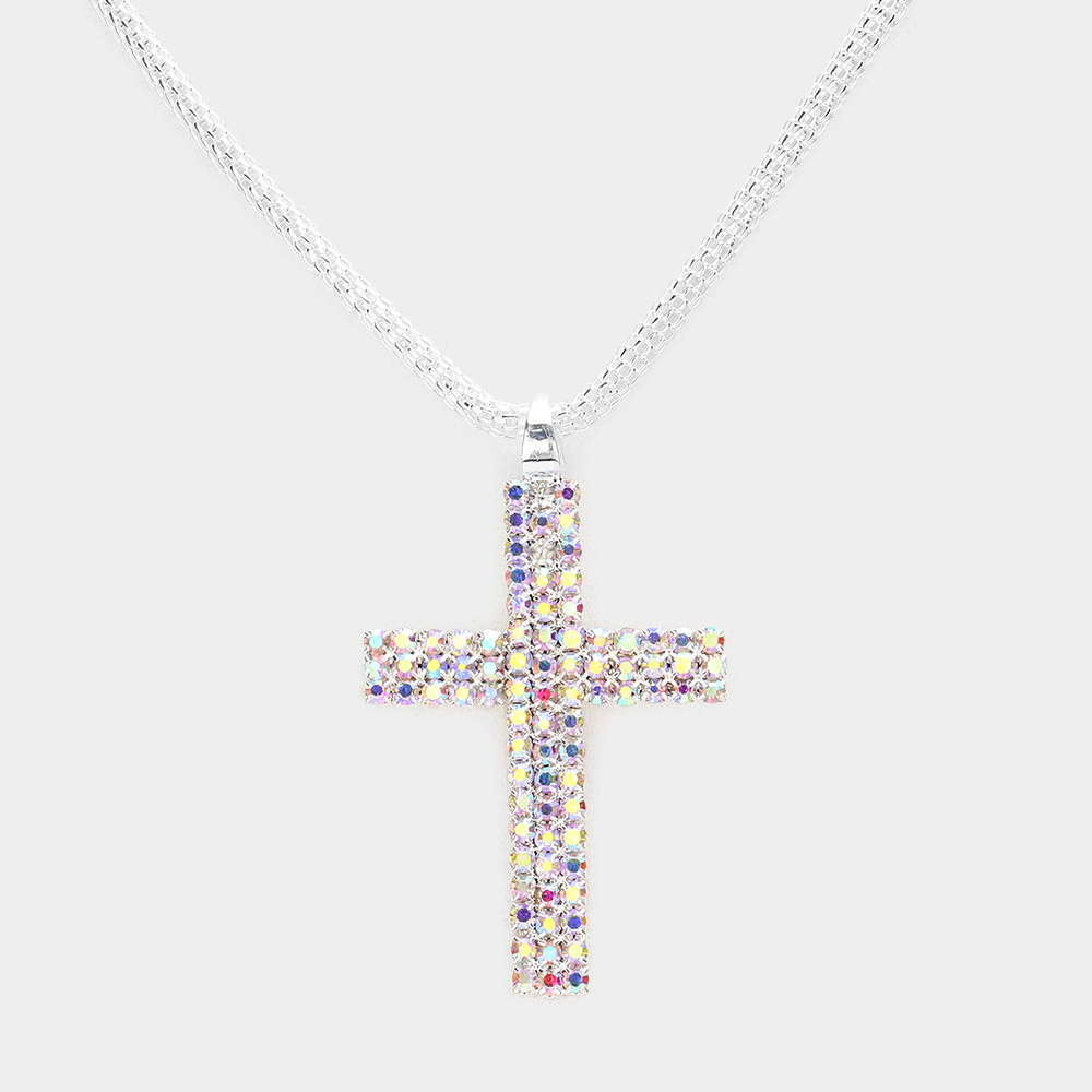 Rhinestone Paved Cross Pendant Necklace