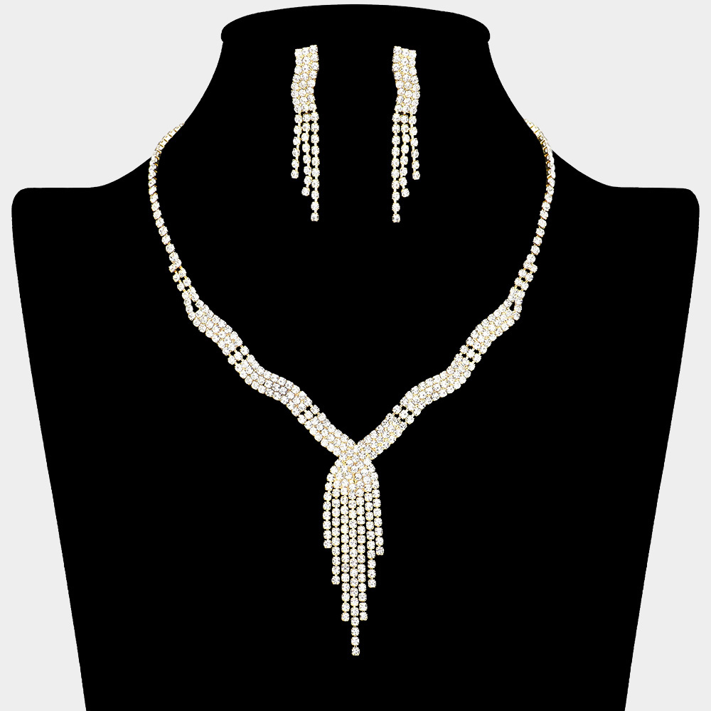 Rhinestone Paved Fringe Wavy Necklace