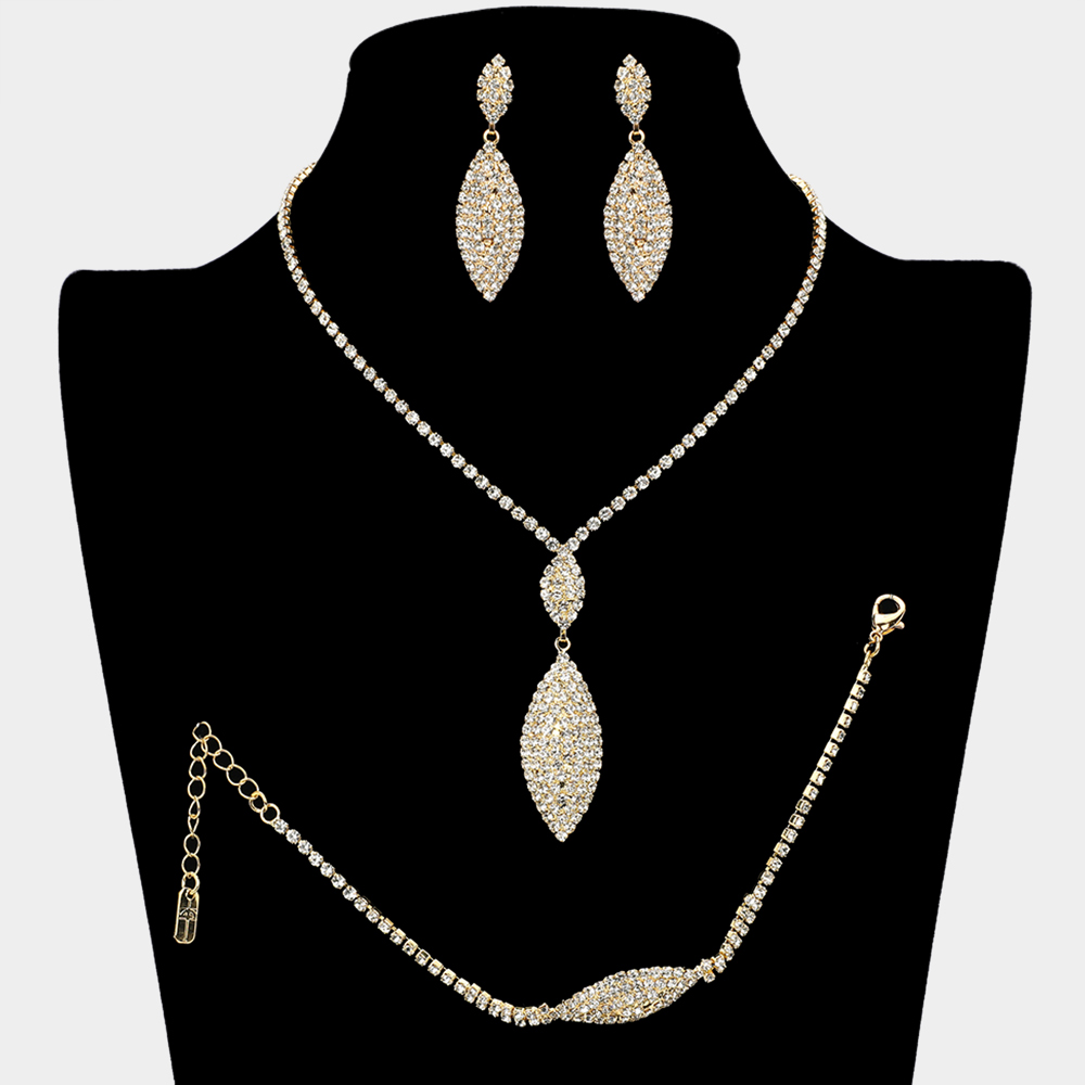 Rhinestone Paved Marquise Drop Necklace Set
