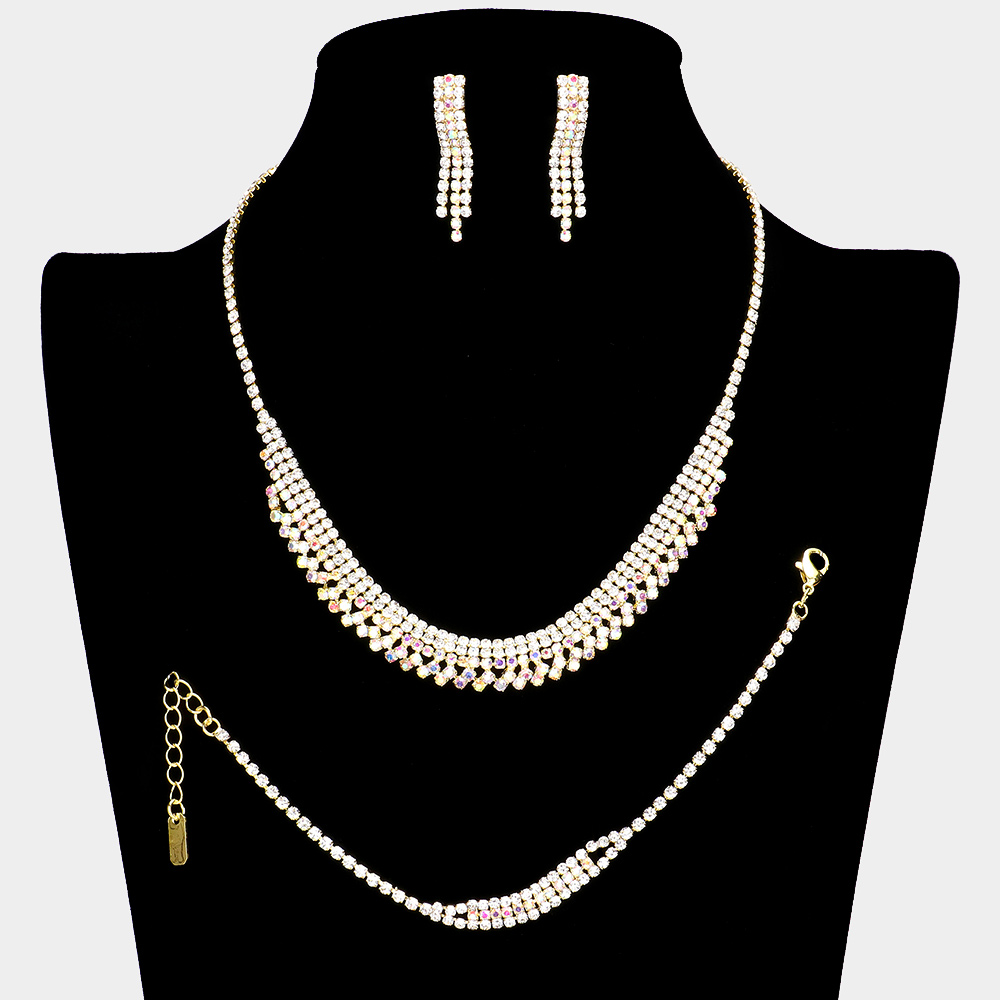 Rhinestone Paved Necklace Jewelry Set