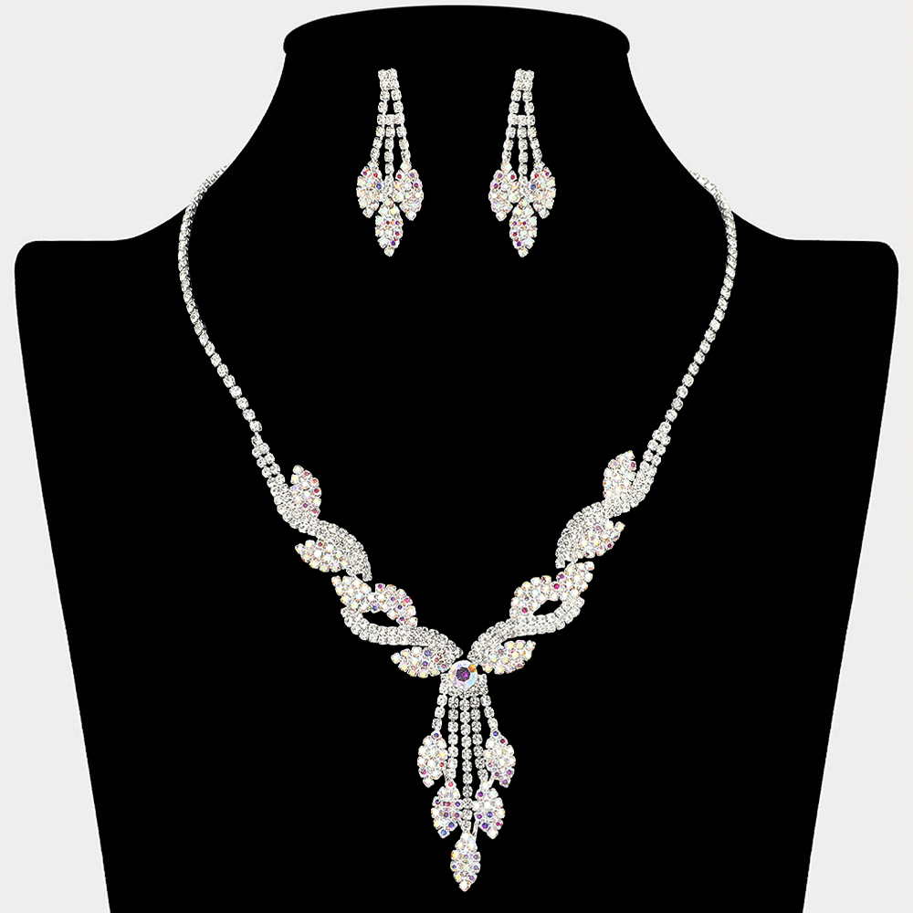 Details • Necklace Size : 16.25" + 4.25" L • Decor Size : 1.8" L • Earrings Size : 1.6" L • Luxurious necklace and matching earring set designed with intricate detailing and cascading drop elements for dramatic elegance. Ideal for weddings, galas, formal events, and evening wear. A striking statement set that adds refined glamour and movement to special occasion looks.