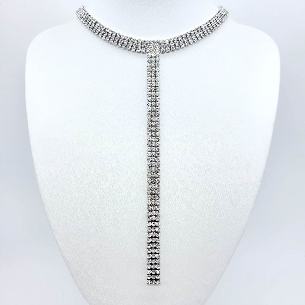 Silver Dipped Y Shaped Rhinestone Necklace Silver Dipped Y Shaped Rhinestone Necklace Silver Dipped Y Shaped Rhinestone Necklace