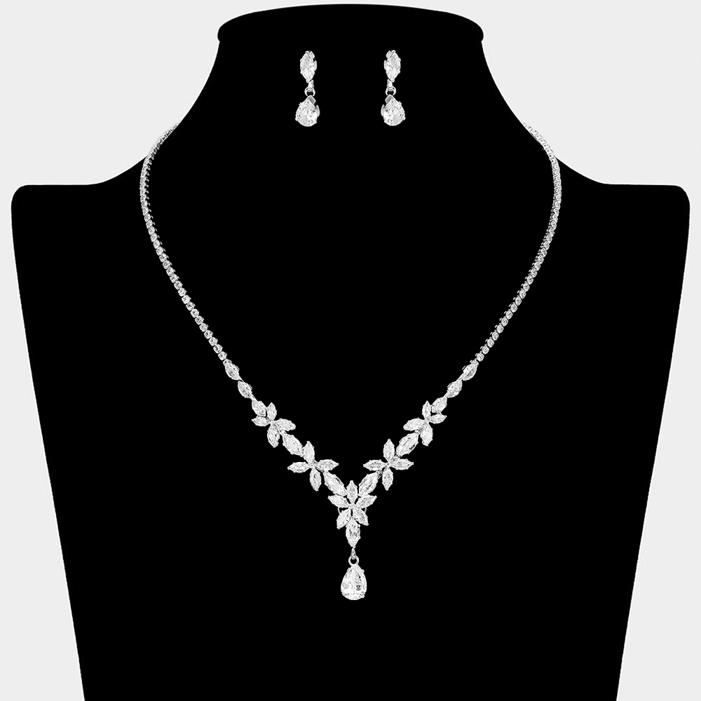Teardrop CZ Stone Cluster Drop Marquise Cluster Embellished Necklace