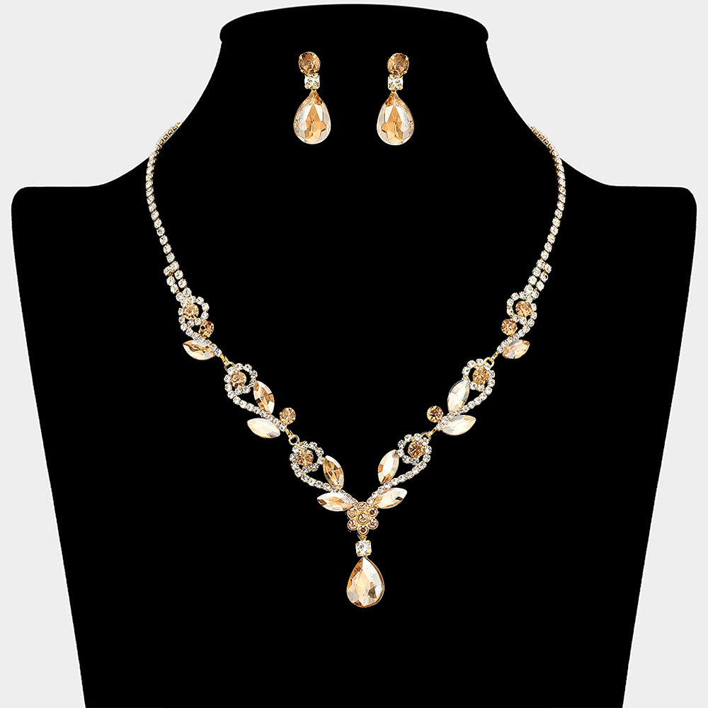 • This elegant necklace and matching earring set features a graceful teardrop design with layered crystal details that highlight the neckline beautifully. Ideal for weddings, formal events, proms, and evening occasions, it delivers timeless elegance and eye-catching sparkle for special celebrations.
