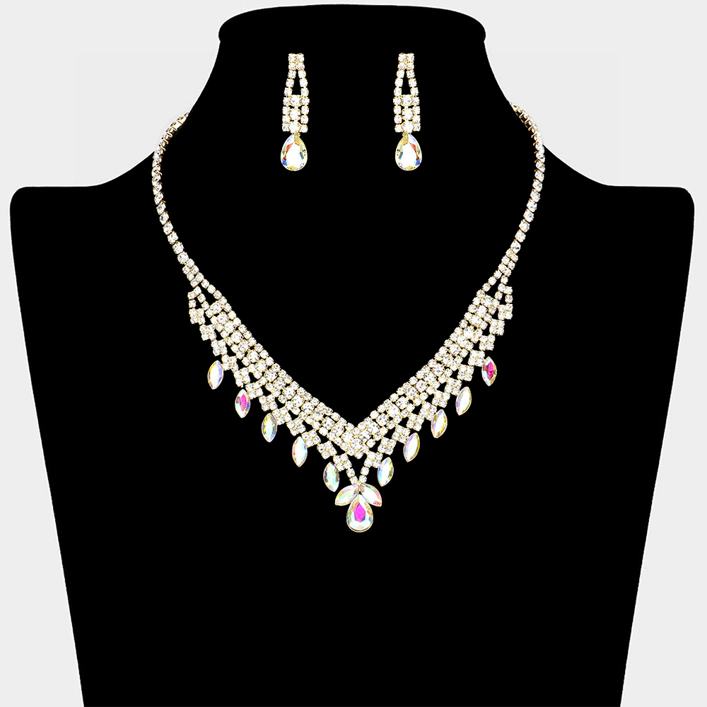 • Add radiant charm to your look with this rhinestone necklace and earring set featuring teardrop accents and intricate detailing. Designed for weddings, proms, and elegant evenings, this jewelry set brings brilliance and refinement to any special occasion ensemble.