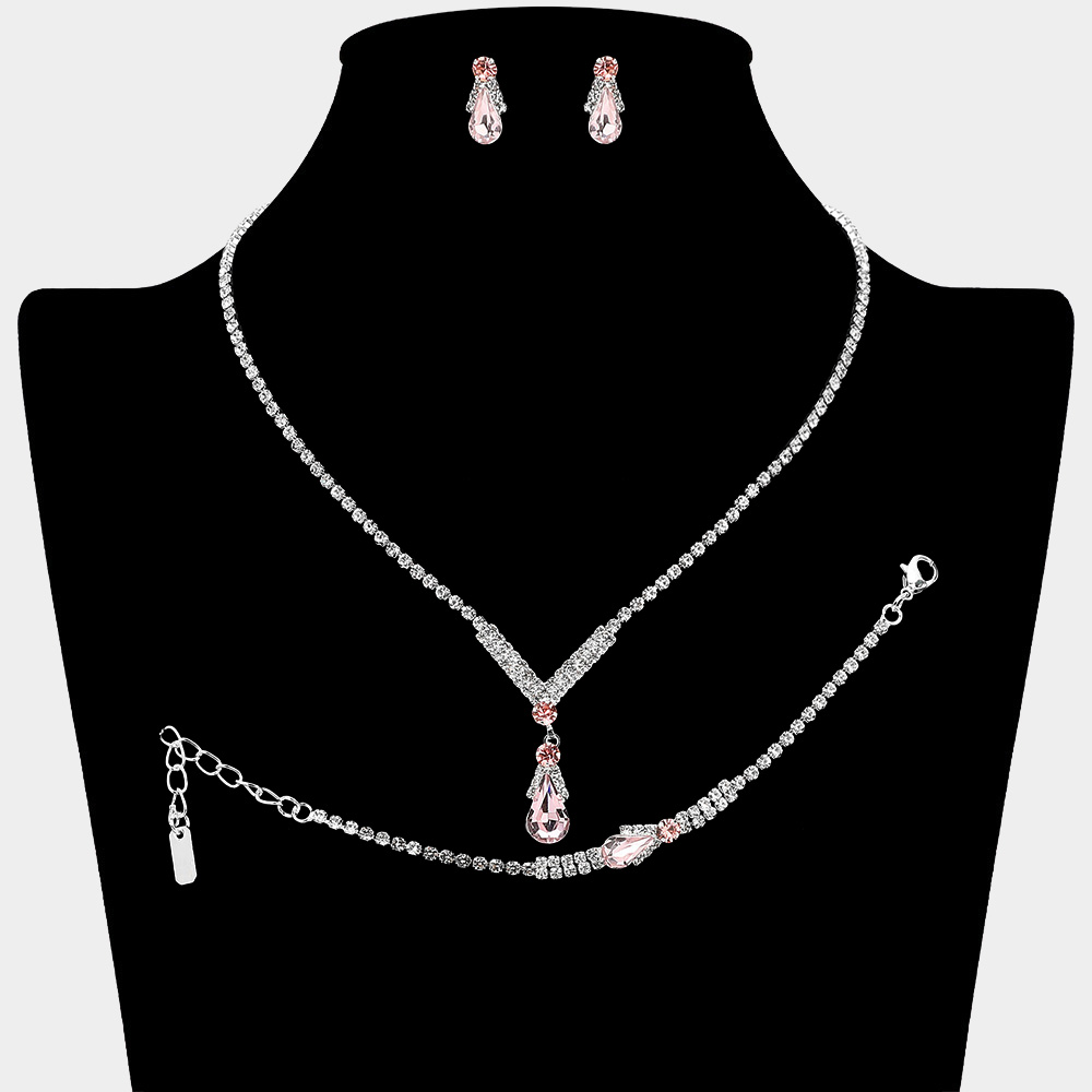 • Elevate your style with this elegant necklace and earring set featuring sparkling teardrop-shaped accents. Ideal for weddings, parties, and formal events, this coordinated set adds a refined touch and timeless glamour to any outfit. Perfect gift for someone special.