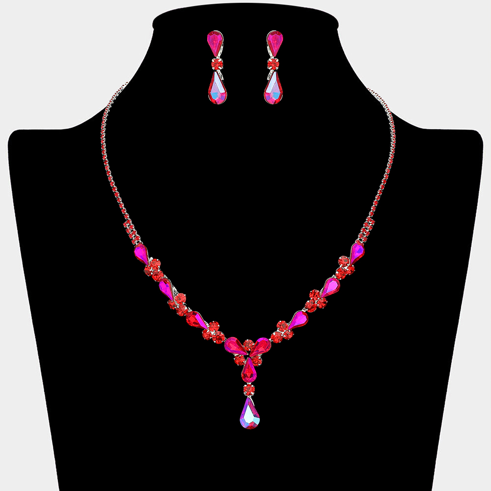• This elegant necklace and earring set features a graceful teardrop crystal design that highlights the neckline with refined sparkle. Ideal for weddings, bridal looks, formal occasions, and evening wear, it delivers a timeless statement that complements gowns, dresses, and special event styling with effortless sophistication.