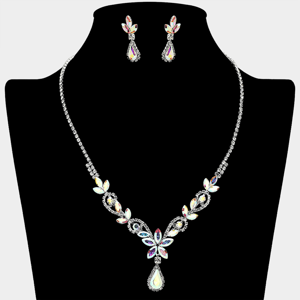• This exquisite rhinestone necklace and earring set features a graceful teardrop pendant accented by delicate leaf motifs. Perfect for weddings, galas, and formal occasions, it adds timeless sparkle and refined beauty, creating a sophisticated statement for any elegant ensemble.