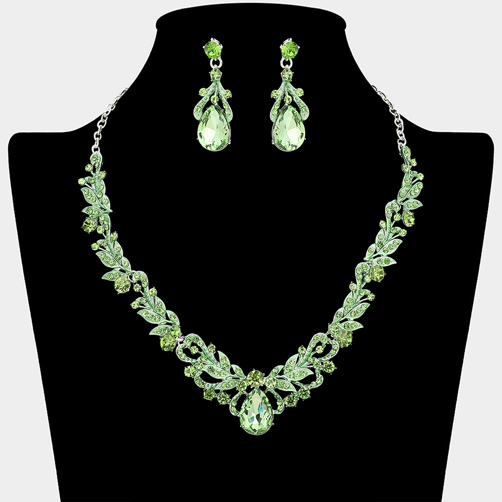 Details • Necklace Size : 18" + 3" L • Decor Size : 1" L • Earrings Size : 1.7" L • Elevate special occasion styling with this elegant necklace and earring set designed with graceful teardrop accents and detailed patterns. Ideal for weddings, formal events, proms, and evening wear, this coordinated set adds refined sparkle and timeless sophistication to any dress or gown.