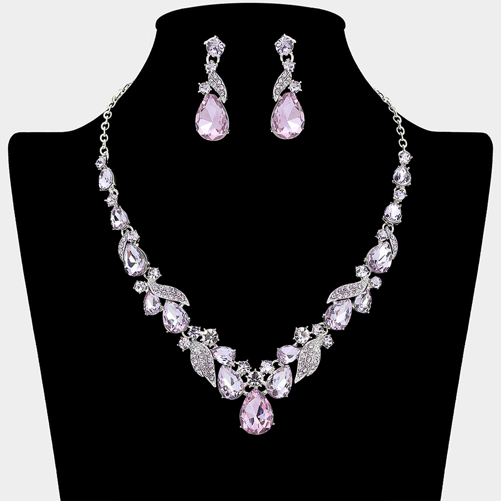 • Elevate formal and evening looks with this statement necklace and earring set featuring layered teardrop and marquise accents arranged in a graceful, eye-catching design. Ideal for weddings, proms, parties, and special occasions, this coordinated set adds dramatic sparkle and refined glamour to any outfit.