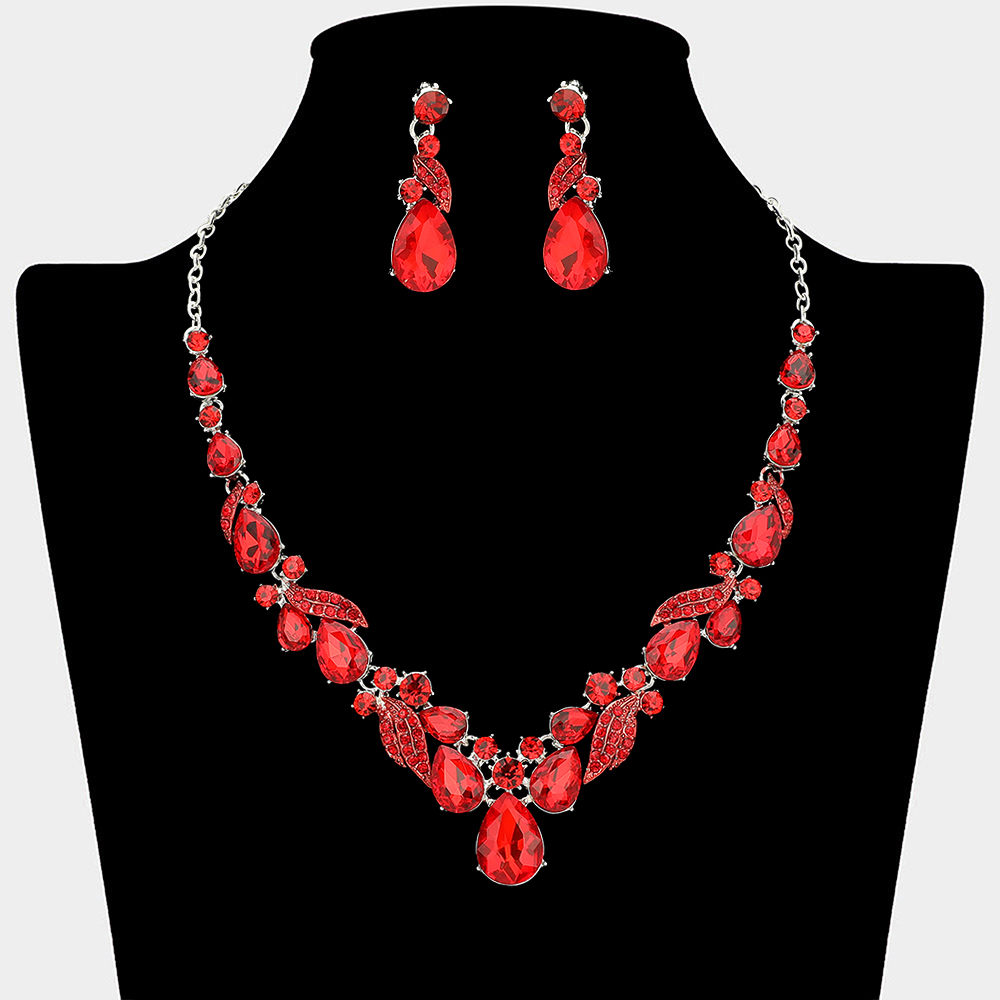 • Elevate formal and evening looks with this statement necklace and earring set featuring layered teardrop and marquise accents arranged in a graceful, eye-catching design. Ideal for weddings, proms, parties, and special occasions, this coordinated set adds dramatic sparkle and refined glamour to any outfit.