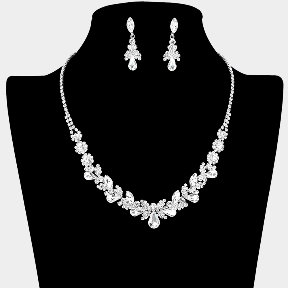 Teardrop Stone Cluster Flower Embellished Necklace